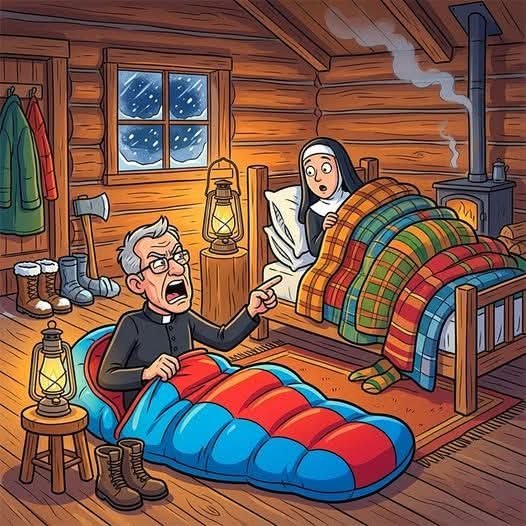 A priest and a nun were lost in a blizzard. After a while, they came upon a small cabin. Being