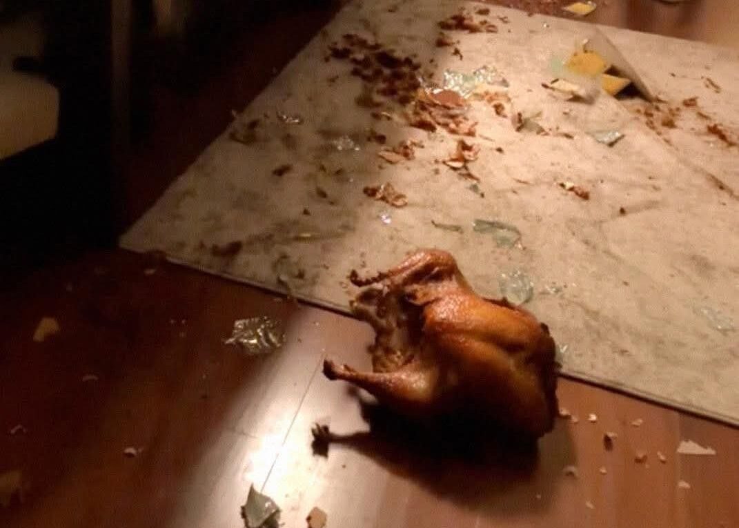Gasps filled the room as the turkey crashed with a heavy thud. Gravy splattered across the tiles, cranberry sauce smeared on the white ceramic, and a stunned silence fell over the room.