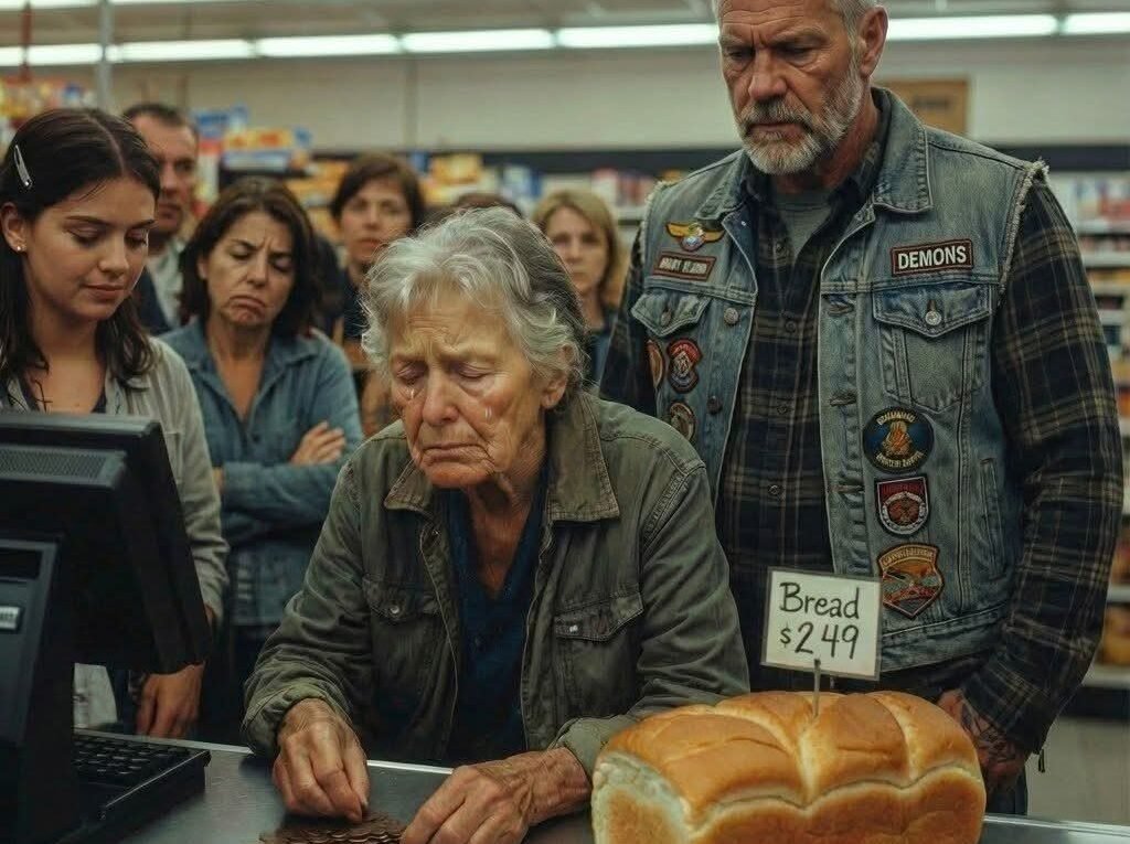 The cashier laughed at her — actually laughed — while that tiny old woman tried to count enough pennies for a loaf of bread. I’d spent sixty-seven years on this planet and forty-three on a bike, but I’d never felt rage hit me that fast. Her hands were shaking, her voice barely a whisper, and the people in line were sighing like she was nothing but an inconvenience. When the cashier mocked her for being twenty-three cents short, I slammed a twenty onto the counter and demanded she apologize. But everything shifted when the woman tugged at my sleeve and her arm revealed faded blue numbers. Auschwitz. A child survivor being humiliated in a grocery store over bread.