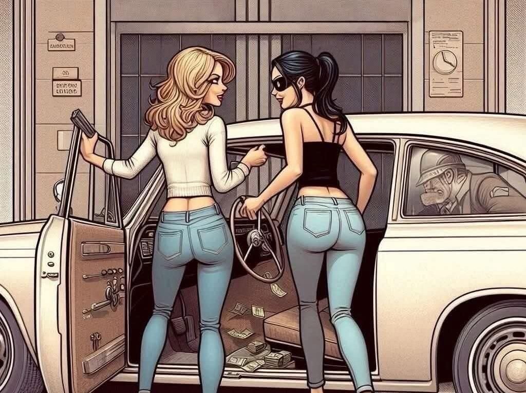 A blonde and a brunette decided to r.o.b a bank, and after some planning, they put their scheme into action.