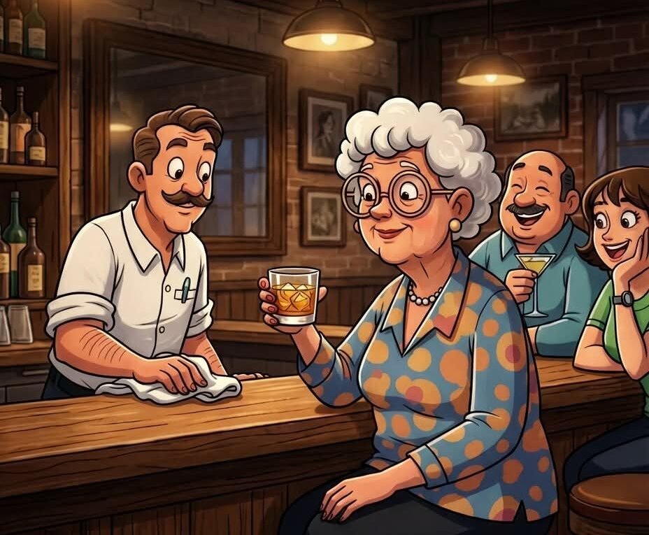 What started as an ordinary evening aboard a cruise ship soon became the kind of story fellow passengers would remember long after returning home. In the lounge, the atmosphere was relaxed, with music drifting softly through the room and the ocean moving quietly beyond the windows. Into that calm setting walked an older woman with a lively smile and unmistakable confidence. She stepped up to the bar, ordered a Scotch with exactly two drops of water, and when the bartender casually asked what the occasion was, she revealed she was celebrating her 80th birthday.